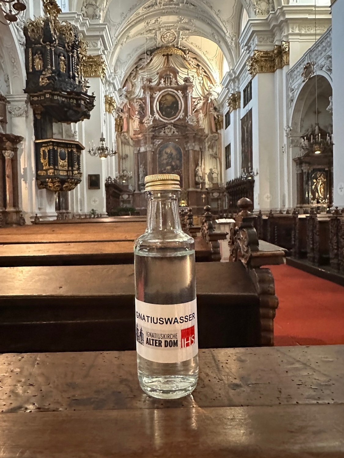 Unser Ignatiuswasser kann man sich während der Öffnungszeiten im Alten Dom abholen - bitte um eine kleine Spende dafür!